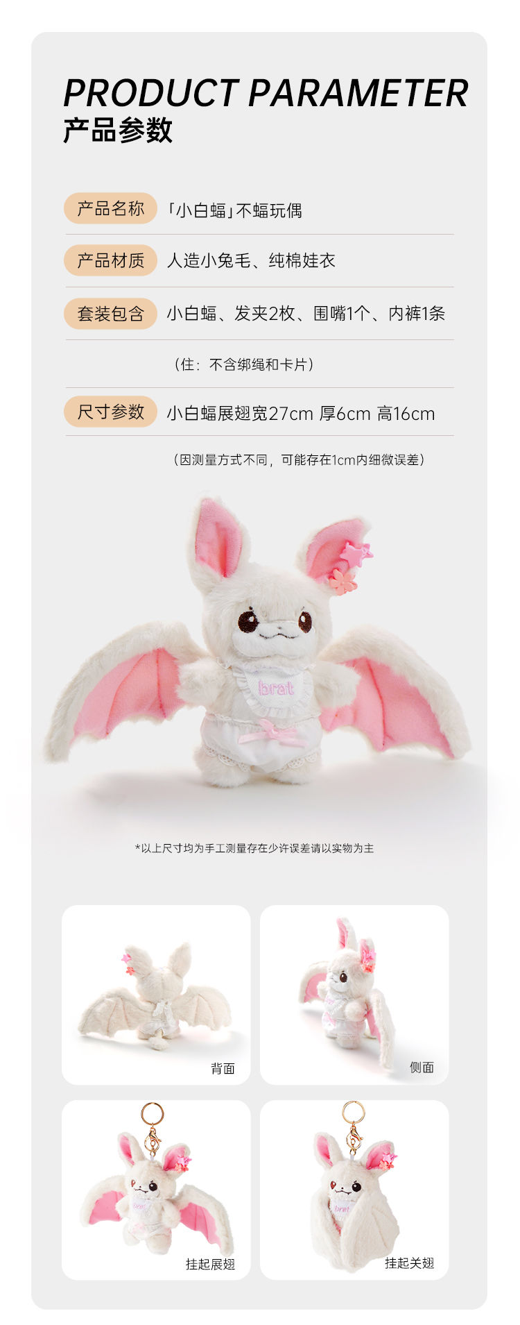 【重磅新品】纵锦浪里不服蝙蝠DDLG小白蝠毛绒玩偶玩具抱枕布娃娃
