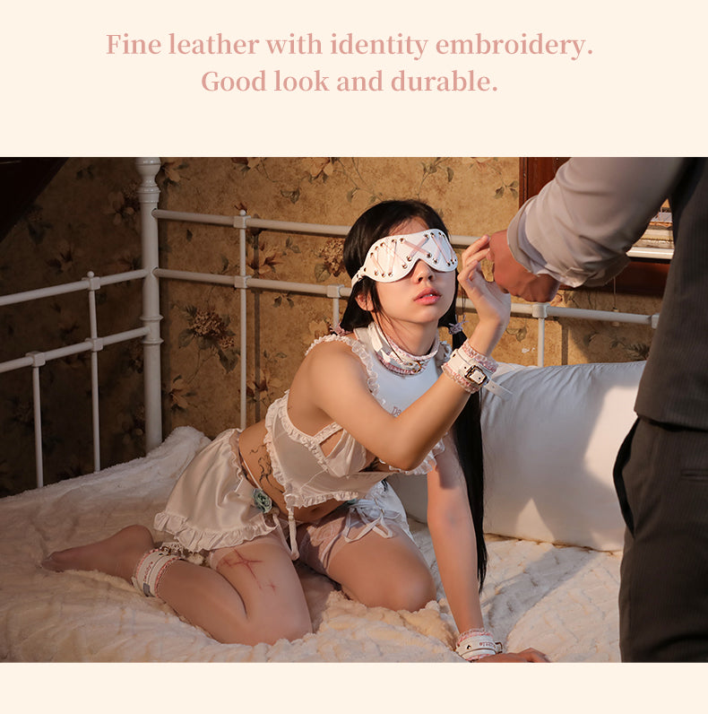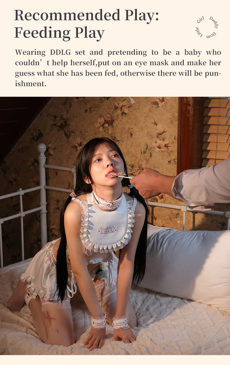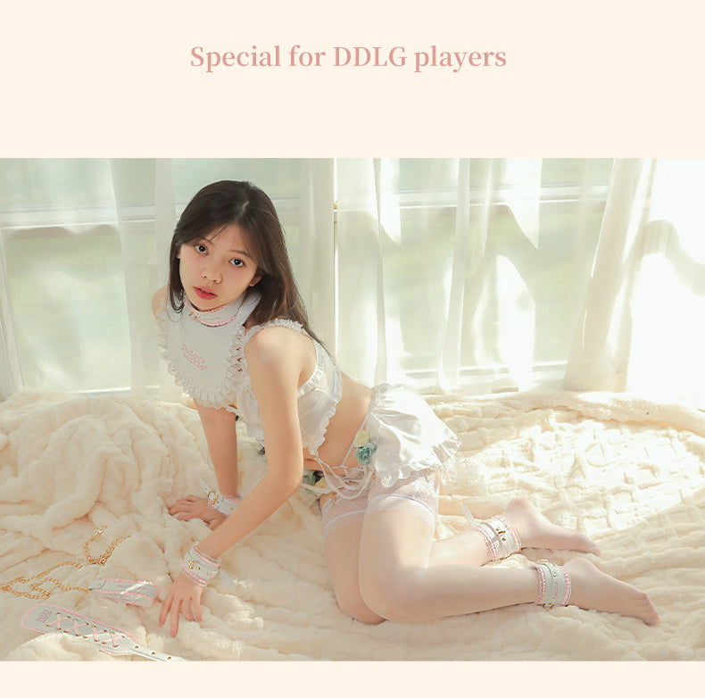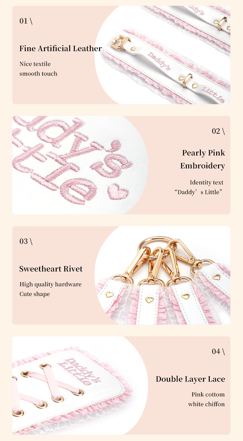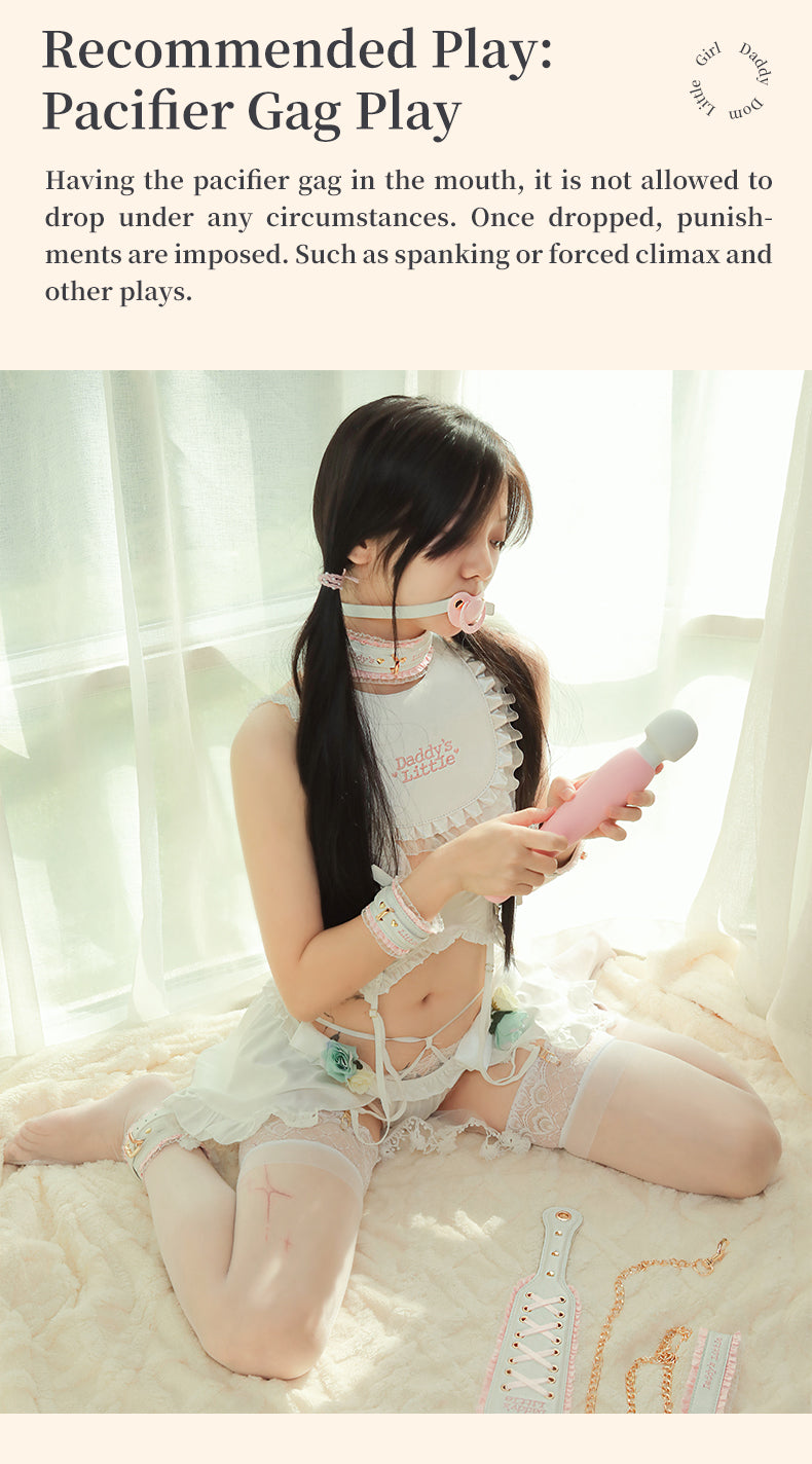 BDSM Kit Bondage Set for Daddy Dom's Little Girl DDLG ABDL Age Play Female Users, 14 PCS Lace & Leather Restraint Sets with Kinky Pacifier Gag, Bib, Collar (Pink&White)