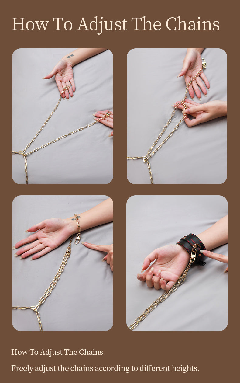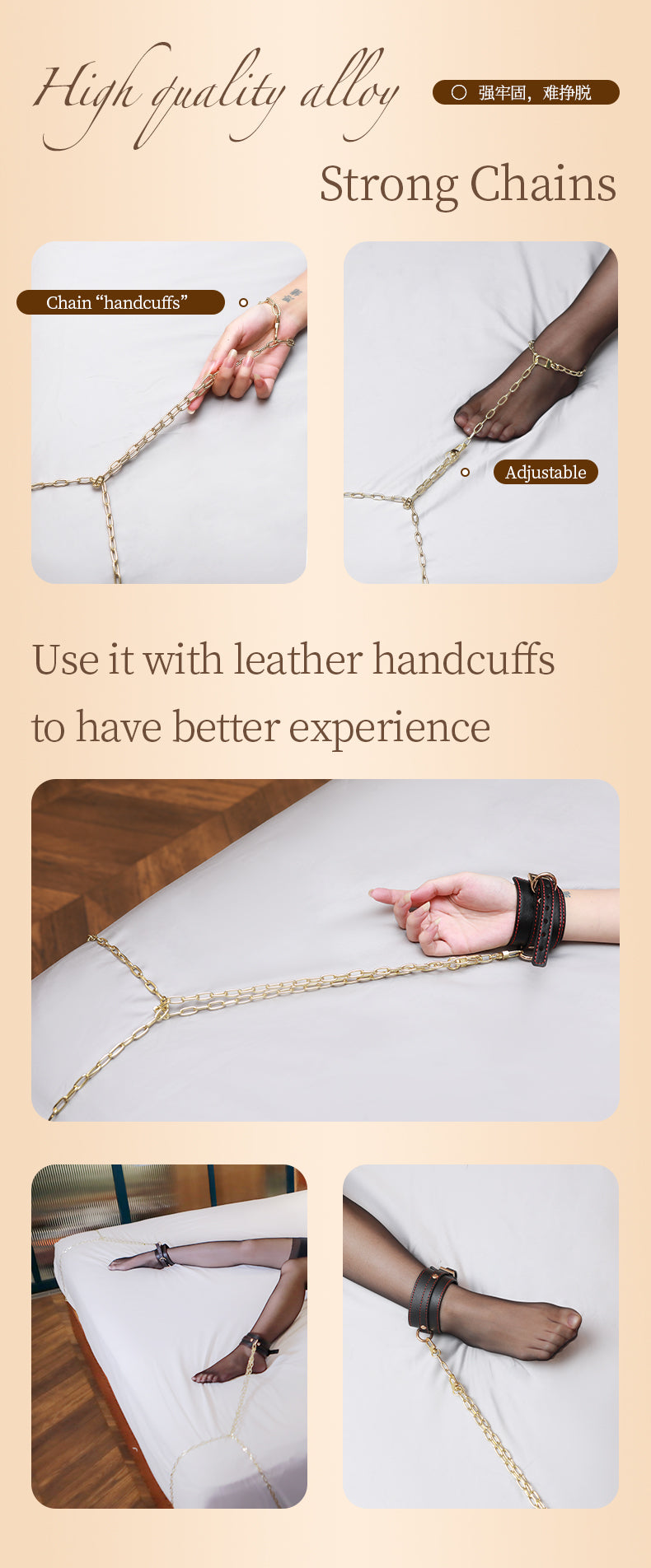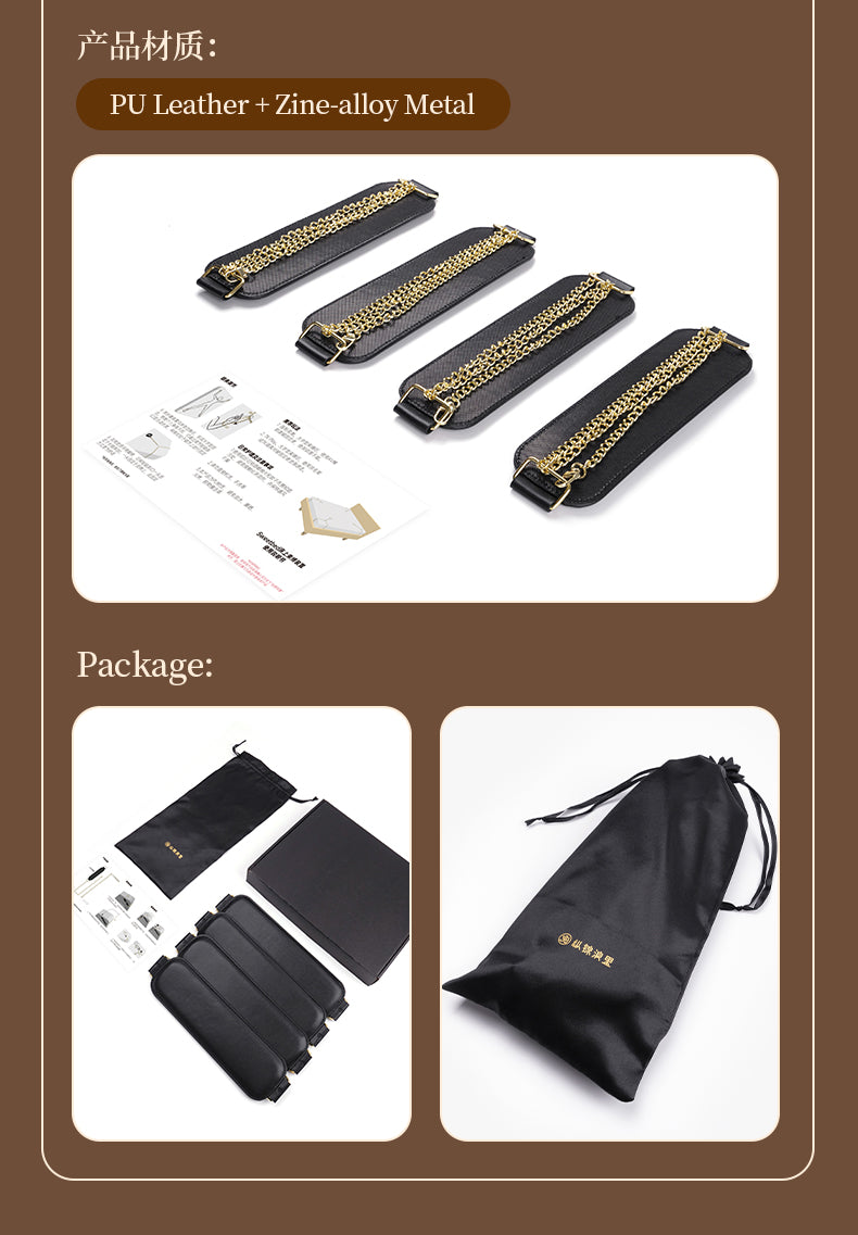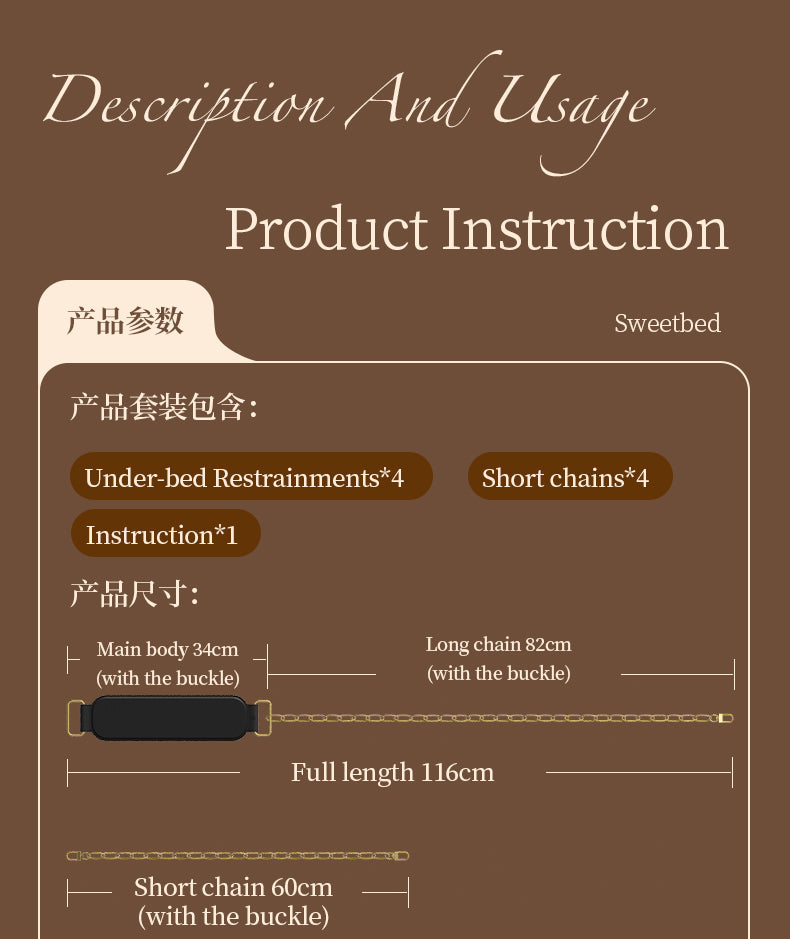 BDSM Under-bed Adjustable Restraints Sets, Super fast&easy to assemble, Leather Pads &Chains, Room Sex Game, 4PCS with hands&feet restraints